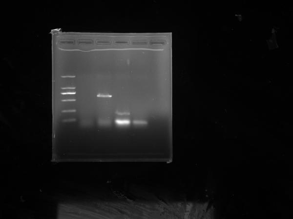 对于问题一:建议参照marker条带位置(看一下marker的说明书,应该会有对应的每条带长度说明的),以及你设计时候的预期扩增片段长度,结合起来可以估计出第三条带的大小。 对于问题二:应该是你扩增的条件设置不够理想,导致引物二聚体严重。建议提高退火问题,或者是用touchdown(二阶段温度法)的方法(对于上下游引物TM值相差较大的情况)重新扩增,扩增结果应该会有改善。 |
