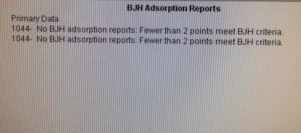 今天用这个仪器测了一个全孔的分析,用的是工程师留下的模板,得到样品的BET还不到1(测过自由空间之后,而且BJH的吸附于脱附也没出现啥内容(