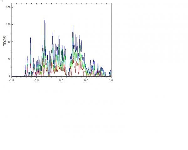 横坐标就是能量。分子体系分子轨道能级是离散的,分子轨道能量是多少,在哪个横坐标位置TDOS上就表示为一个竖条(代表在这里有个能量态),而展宽后,就是一个峰形。 你要做的图是PDOS。由于Multiwfn需要计算出p、d轨道对分子轨道的贡献才能做这样的图,而Multiwfn的轨道成分分析又需要fch文件,所以必须以fch文件作为输入。 作图过程可以看手册4.10节的例子。与做TDOS的区别就是在选择作图之前,先选-1进入设定片段的界面,把对应于你要考察的p或d轨道相应的基函数都加进片段里,然后作图时就会同时出现PDOS。 |
