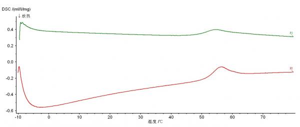 DSC图 大家帮忙分析一下这个DSC图,同一型号的样品,为什么纵坐标起点不一样的,为什么下面的样品在-10-0摄氏度有个大的吸热峰呢,我做的是环氧粉末的玻璃化转变温度测试。 MultipleData.jpg |
