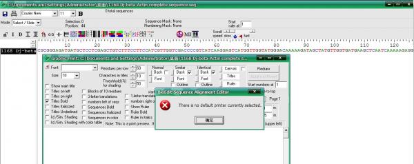 用BioEdit软件时总是会冒出“There is no default printer currently selected ”导致软件不能用,就是做cDNA全长展示及推测氨基酸序列时,附上图片。求高手指点啊!!谢谢啦! KI.jpg |