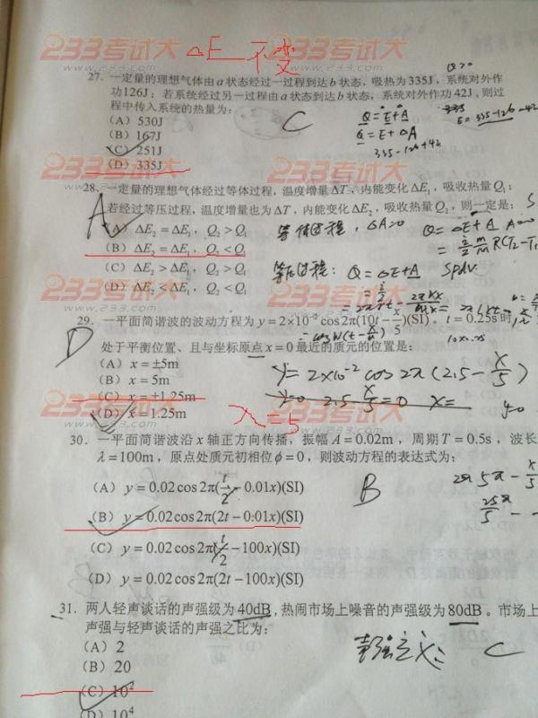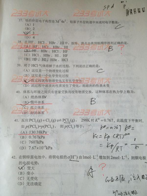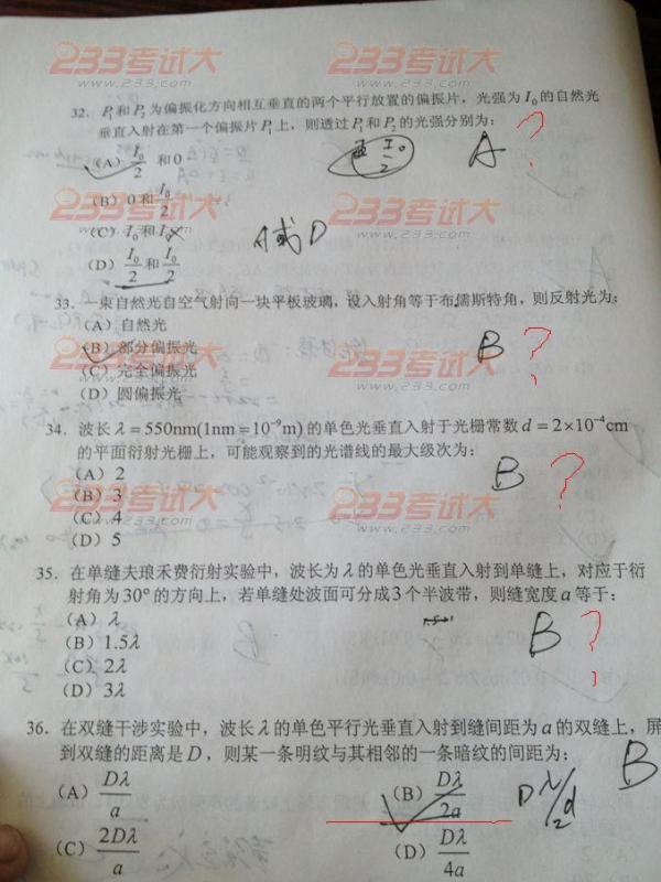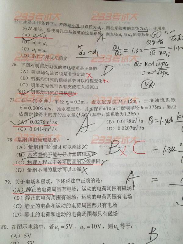 2012环保工程师公共基础真题答案,拿过来给大家分享一下