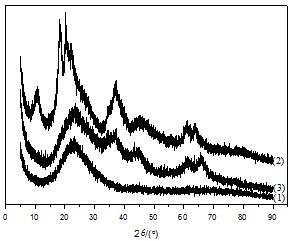 图中(1)为SBA-15,(2)为SBA-15混合了硝酸镁和硝酸铝,(3)为混合后焙烧后的结果。 如图,(1)为SBA-15中的硅,(3)30°后面的小峰是MgAl混合物吗?而(2)中30°前面几个峰如何解释呢,求解 ![]() 无标题.jpg |