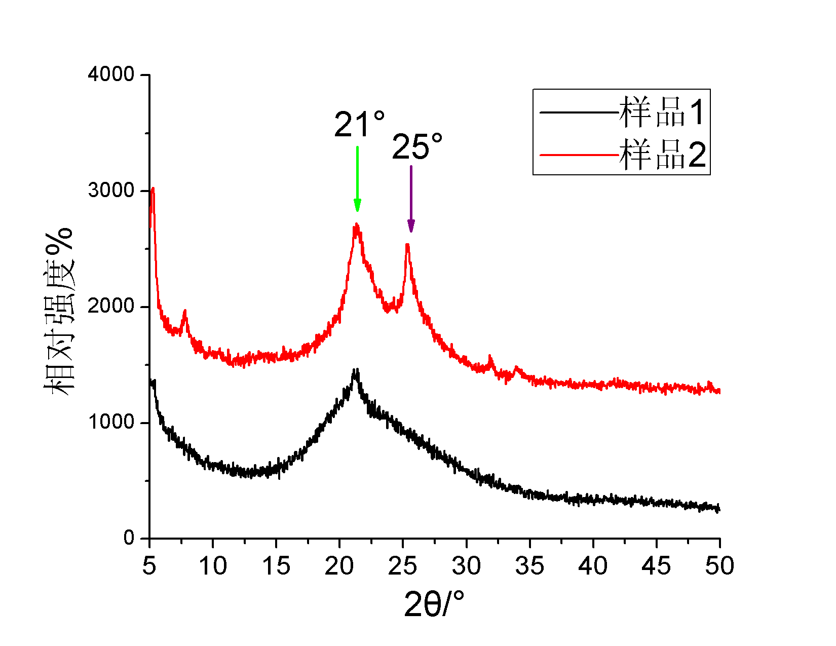 产物在21°和25°均会出现衍射峰,特来寻求帮助,请大牛指导!~