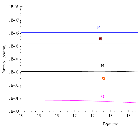 做了个薄膜的SMIS,主要是想看一下其中各个元素的大致含量(H F Si W O),截了一部分的图,哪位大虾帮忙看看大致是多少,还有最重要的就是怎么算的,我大致找了一下各个元素的count number (H:1210,W:163346,F:1180269,Si:711,O:5),在某一特定depth的。然后该怎么样算呢?