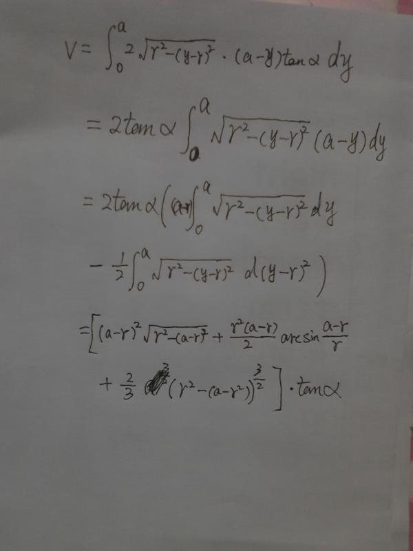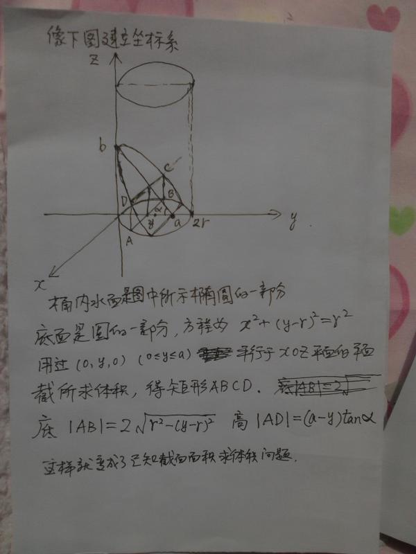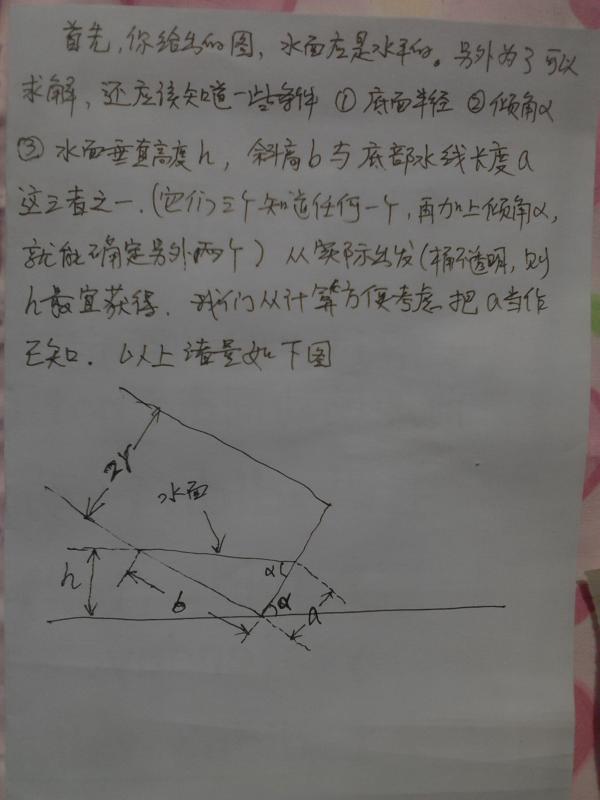 求倾斜圆柱体里面液体的体积难倒我了,求教数学达人!