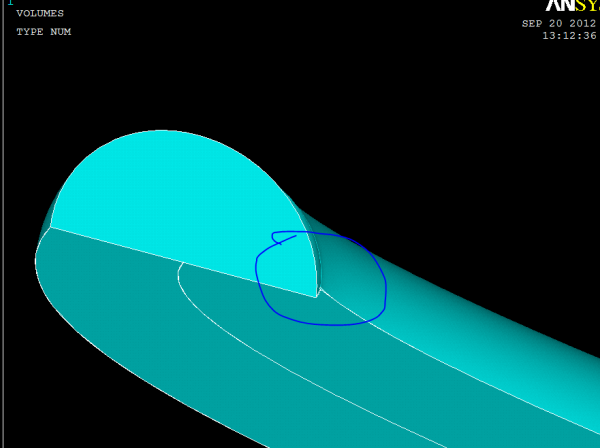 小弟让一个半圆沿着一条椭圆线extrude,但是出现这样的情况,如图,出现了一个尖锐的突起