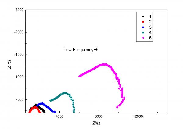 请各位前辈帮忙分析一下,这几个EIS图测的标准吗?应该用什么等效电路分析. 测试频率在0.03Hz-2000Hz 样品是 一个氧化锆圆片的两端涂上Pt电极,用银丝引出来,分别用LCR仪器的电极夹子夹住. Pt.jpg |