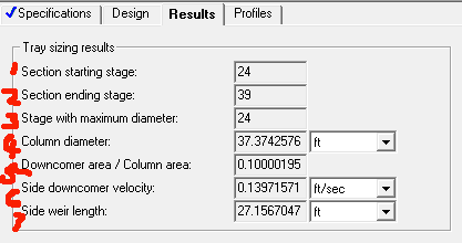 图中是我用Aspen模拟一个精馏塔得到的尺寸数据,但我有点看不太懂,帮忙翻译一下,各部分都是什么意思。 1-7 都代表什么 [ Last edited by LZC_star on 2012-9-25 at 12:23 ] |