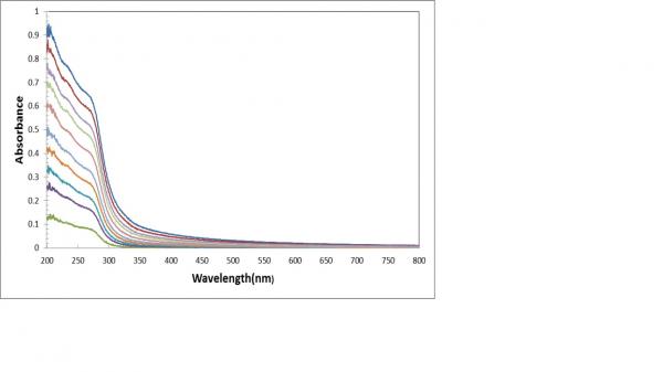 材料是层状的铌酸钙纳米片,在测量紫外吸收的时候,从800道200没有明显的吸收峰,在220--250纳米之间有一个比较宽的吸收,但是没办法确定应该取哪一个波长峰。我要用紫外来表征层数,所以取的波长相当重要。请大家帮忙。 我在文献中看到别人取的是232,但是我不知道原因,请知道的朋友帮忙解释下。 无标题.jpg |