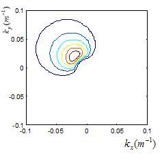 kx=(-pi/Range_spacing:2*pi/(Range*Range_spacing):pi/Range_spacing-2*pi/(Range*Range_spacing)); ky=(-pi/Azimuth_spacing:2*pi/(Azi*Azimuth_spacing):pi/Azimuth_spacing-2*pi/(Azi*Azimuth_spacing)); 由于我处理的是SAR图像,可以很据相关参数来计算方位向和距离向的波数的,这作为横纵坐标波数的输入。之所以不用频率,具体我也不太清楚,SAR图像的海浪谱很多都是用波数的,而且波数和频率之间也是有关系的 |