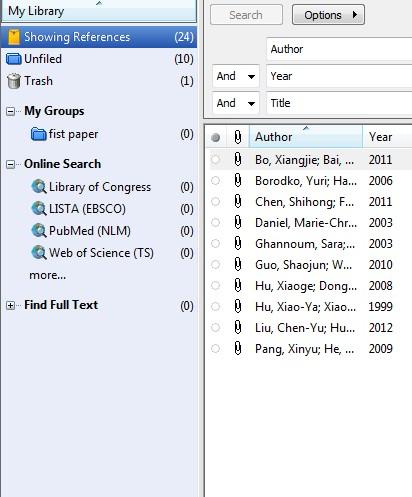 我在EndNote X6 总共保存了24篇文献,但是现在仅剩下10篇了,但是现实数目还是24,但是就是找不到其他文献去哪里了,怎么回事啊?有没有谁遇到过相同的问题? $G7NN(]T7H}S_8AA}NC7}62.jpg |