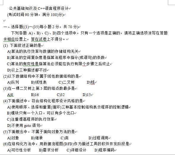国家计算机二级C语言考试