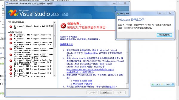 安装visual studio 2008 时出现如图所示的错误,求高手帮忙