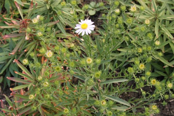 我感觉是小飞蓬,特别是叶子和植株的形状。
