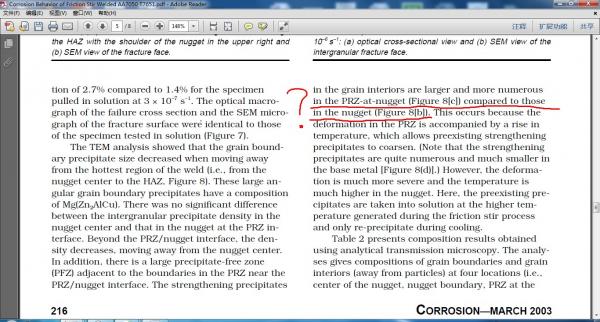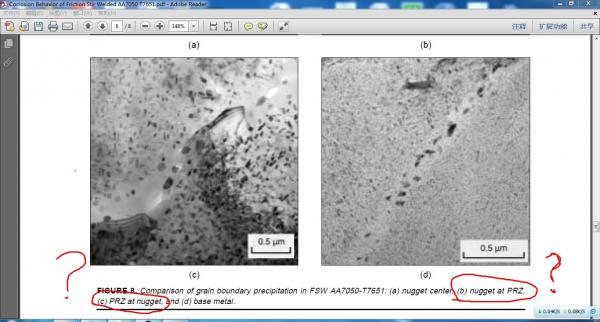 学过搅拌摩擦焊的,或是做过相关研究的,您好!麻烦您能在百忙之中帮我看一下这篇文献中的“nugget at PRZ”和“PRZ at nugget 是什么意思??? 其中的nugget 是焊核区(也就是动态再结晶区,有的文献用的是DXZ),PRZ指的是部分再结晶区,对应着大多数文献的热机影响区(TMHAZ) 求助1.jpg 求助2.jpg 求助3.jpg |