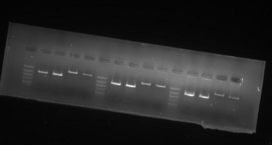 仔细看最亮的条带下面有两条很暗的条带,可能是点样少了拍出来看不清楚,但在电脑上是能看见的