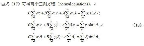 RT,求既懂数学又懂matlab编程的虫友有偿编写一个m文件。 从实验中可以得到的数据是h、k、l 和 θ (6组数据,每组都有h、k、l 和 θ。)。 原始公式如下: 经过最小二乘法后得到三个正则方程: 谢谢!!! [ Last edited by 毛猴的小弟 on 2012-9-26 at 22:48 ] |
