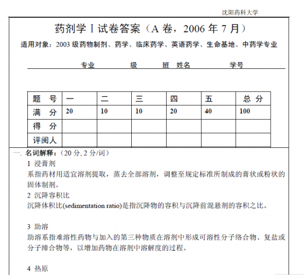 【期末试题】沈阳药科大学药剂学试题及答案
