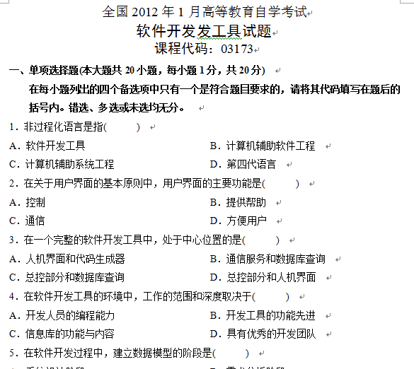 【真题资源】高等教育自学考试软件开发发工具试题真题