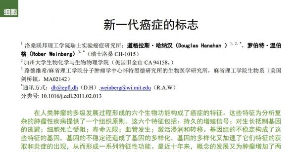 【分享】肿瘤学中又一篇经典必读文章 Hallmarks of Cancer: The Next Generation