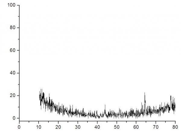 有可能是噪音太厉害,在45和65°附近的峰可能是你的结果。