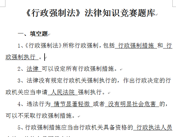 【竞赛试题】《行政强制法》法律知识竞赛题库