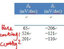 如图是镁合金基体+两个膜层对比的电化学塔菲尔斜率数值对比表,大家看看,阴阳极变化趋势很像,特别是阳极的数值变化有点大,但是阳极反应无非就是Mg——>Mg(OH)2,实在不会分析,求高手赐教哈。。![]() ![]() 基体+两个膜层对比.JPG |
