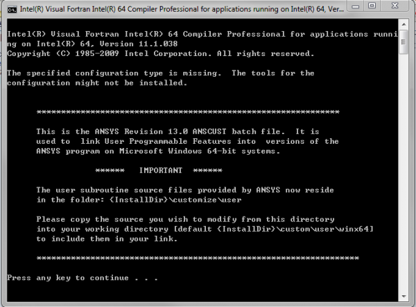 Fortran程序已经编好了,用的ANSYS13. fortran 11.1.038。但是不知道怎么compile啊。 谢谢大家啊 运行ANSCUST.BAT时候显示如下 http://jj.muchong.com/image1/20/fb/1200454_1349229678_649.png QQ截图20121003120049.png [ Last edited by bjxtju on 2012-10-3 at 10:02 ] |