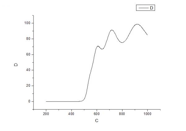 我按照小木虫上大家给出的方法画了禁带宽,可是画出来是这样的效果,实在不知道为什么,求助大家给解释一下,顺便给出正确的方法.知道的童鞋帮帮忙吧,O(∩_∩)O谢谢。 2.jpg是由透射率画出来的禁带宽。 2.jpg Graph3.jpg |