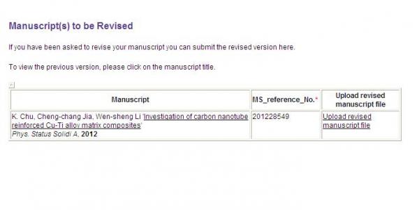 投了一篇文章 一直没收到回复,今天查看了下投稿系统,结果投稿系统显示(Manuscript(s) to be Revised)可以上传修改稿(Upload revised manuscript file),但是投稿系统也没法查到审稿人意见,第一次发现这种情况,求教啊