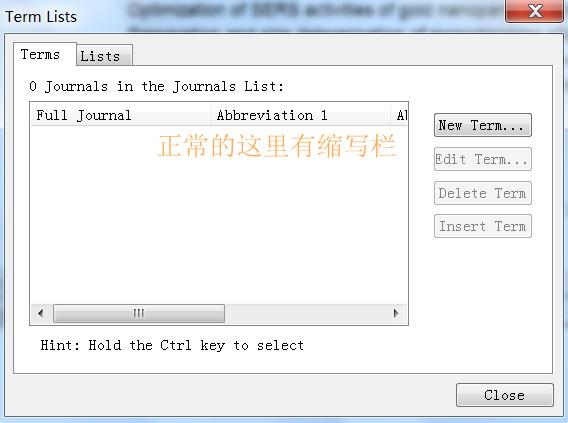 Endnote中"Journal term list"恢复-已解决,请删帖