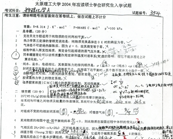 【真题资源】太原理工大学 化工专业考研真题 无机 物化 04年