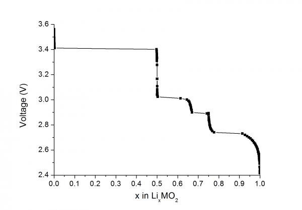 请教各位实验大牛们,我用计算方法获得一个正极材料随着放电过程电压的变化曲线,现想转换成Discharge Capacity该如何实现?以下是计算放电电压曲线图。
