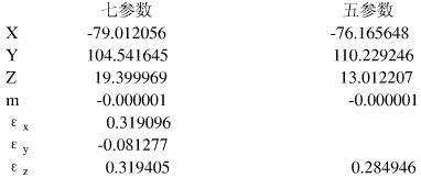 请教各位地学达人, WGS-84坐标系和北京54坐标系转换的七参数和三参数分别是多少?由于没有两坐标系下的对应点坐标,仅有北京54的,自己没法推求。看到网上有下面一组数据,又不知准确度如何?这个在相关教材上有具体说明吗? WGS-84转BJ-54.jpg |