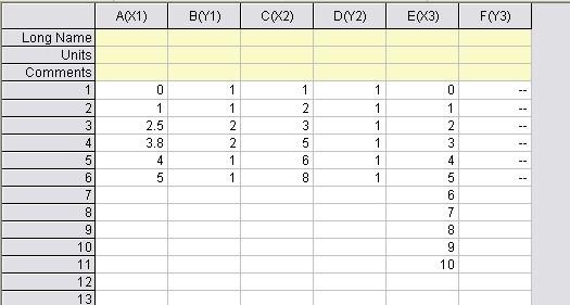 在origin中如何得到两条X坐标不同的曲线叠加后的结果? 例如:曲线1 数据为 X Y 0 1 1 1 2。5 2 3。8 2 4 1 5 1 曲线2数据为: X Y 1 1 2 1 3 1 5 1 6 1 8 1 这两个曲线在X轴上的范围不同,间距也不同,这时如何得到两者叠加后的结果? 必须得手动将两组数据的X轴变成一致的吗?有没有其它的方法? |