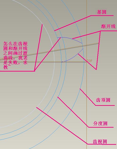 齿轮齿根过渡曲线怎么画出来,我一直没成功,导致我无法生成轮齿。 附件是prt文件,使用的是proe4.0~ 齿轮参数: 模数 2 齿数 12 变位系数 0.35 齿顶圆 Φ29.247 齿根圆 Φ20.4 压力角 20°[ 来自科研家族 机械电子家族 ] ~~~~~~~~~.JPG [ Last edited by lhlm on 2012-10-12 at 16:35 ] |