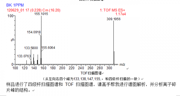 求助各位大虾:请问这化合物的质谱是否正确,该如何解析呀