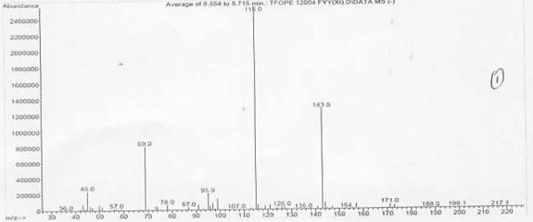 图片可能为三氟丙酮酸乙酯的气质棒状图,主要是分子离子峰没有找到导致没有办法确定,三氟丙酮酸乙酯分子量为170,同时存在M+1峰,143,69,45都能知道裂解过程,特求助基峰115碎片峰的结构????看是否为三氟丙酮酸乙酯? 三氟丙酮酸乙酯气质.jpg [ Last edited by 风去无影 on 2012-10-16 at 07:09 ] |