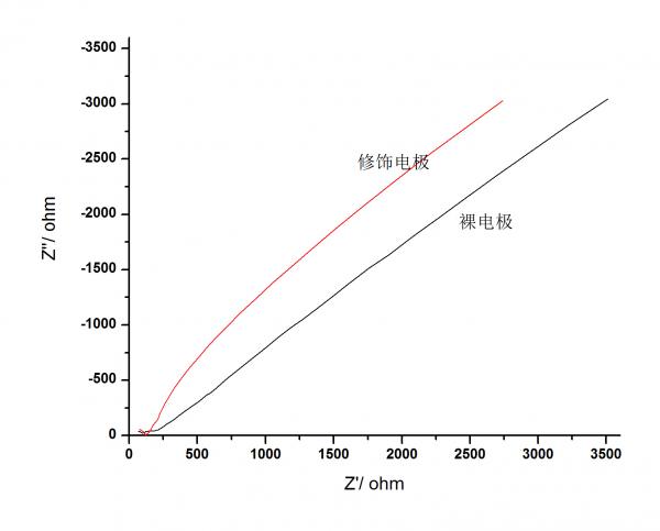 一张电极修饰阻抗图,图线下方圆弧很小,求牛人解释...