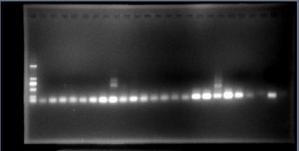 这是我刚跑完的电泳图,用的是2000bp的marker,我的目的条带应该是128bp,如何确定我这儿得到的条带是目的条带还是引物二聚体呢?急求大家帮忙啊!
