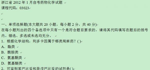 - 附件 3 : 浙江省2012年1月自考药物化学试题.doc