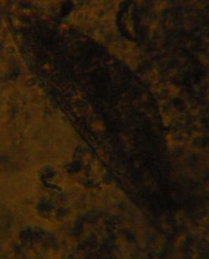 好像是虫子吧,还有可能是你载波片的灰尘。微生物鉴定需要生理生化和一些其他的分子手段才可以吧