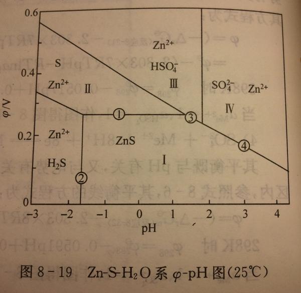 参考资料:冶金原理 李洪桂 科学出版社 ( p184 图8-19Zn-S-H2O系φ-pH图(25℃))