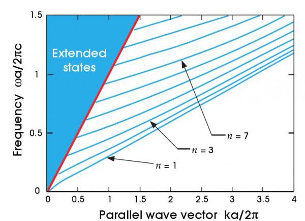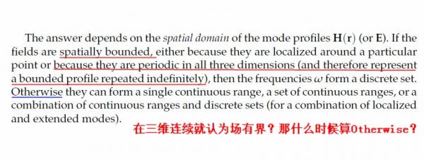但是这里说的是能带(band structure)分离,可以看看我的截图。书里面倒是介绍了不少关于离散谱的内容,说出现能量衰减,或者是周期性传输时,能带可以看做有限。全反射属于能量衰减的情况。