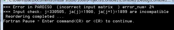 但是当数据量加大后,却出现了下面的问题,应该是pardiso在进行数据检查时发现的错误,具体如下图,我实在是不知道怎么修改了,还请各位帮忙。