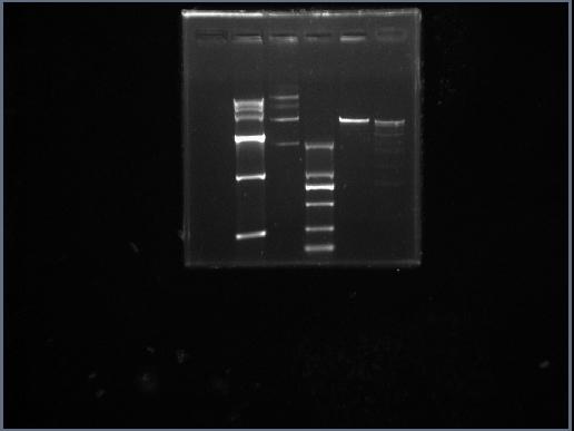 求助:琼脂糖凝胶上跑15K Marker怎么最上面3条带跑不开? 我用的是0.8%的琼脂糖凝胶,就是15K 的Marker最上面3条带没有跑开,但是8K和8K一下的Marker可以跑的很好! 求高人指点啊!谢谢啦! 质粒、质粒酶切对照2012-09-11+10hr+06min.jpg |