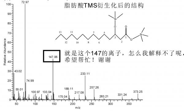 贝塔羟基脂肪酸TMS衍生化 GC-MS 质谱图解析,麻烦帮我看一下!