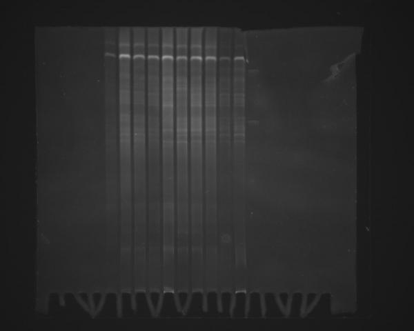 这是我跑的DGGE电泳图,PCR监测很清晰,但是这个不太好,请问这有可能是什么原因呢?我现在的电泳条件是80V,14h,胶的浓度时8%,变性液浓度30-60%,EB染色30h,我要做的是每个个体之间这个基因的差异,文献上也报道这段基因多态性非常高,可是从我这个图看貌似没有差异,很纠结!请大家帮我分析下我怎么优化下电泳的条件呢? 10.27dgge.jpg |