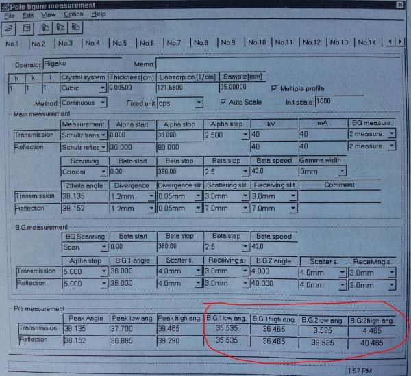 XRD极图参数设置